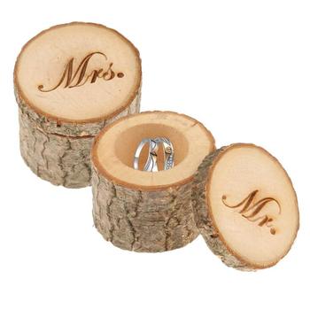 Mr Mrs-caja de anillo de madera, joyería redonda para ella, celebración de boda, regalo creativo artesanal